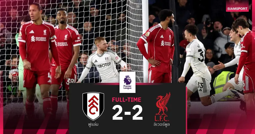 เกมมาสนุกแบบดราม่าซ้อนดราม่าช่วงทดเจ็บ เจเรมี่ ฟริมปง ตัวสำรองจ่ายให้ โกดี้ คักโป กระทุ้งเผาขขน 2-1 นาที 90+4 กะว่าเป็นประตูแซงคว้าชัยที่ไหนได้ น.90+7 จากจังหวะไม่น่ามีอะไรมาโดนทีเด็ดซูเปอร์ซับ เควิน จ่ายสั้น ๆ ให้ แฮร์ริสัน รีด ที่เพิ่งลงมาไม่นานตั้งป้อมตะบันเสียบสามเหลี่ยมสุดงามช่วยให้ ฟูแล่ม ตีเสมอ 2-2 ส่งผลให้ ลิเวอร์พูล ยังรั้งที่ 4 นำ แมนฯ ยูไนเต็ด 3 แต้มเท่าเดิม ส่วนทีมเจ้าสัวน้อยไร้พ่าย 5 นัดรวดขยับ 1 อันดับขึ้นมาที่ 11