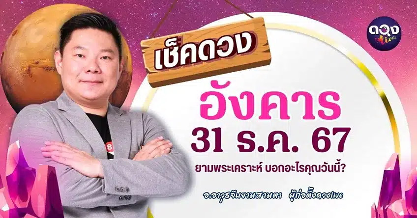 ดูดวงวันนี้ ดวงรายวัน โดยอ.อาวุธจับยามสามตา แห่งดวงlive ประจำวันอังคารที่ 31 ธันวาคม 2567 เรามาอัพเดทกันเลยค่ะว่า ดวงวันนี้ จะเป็นอย่างไรบ้าง […]