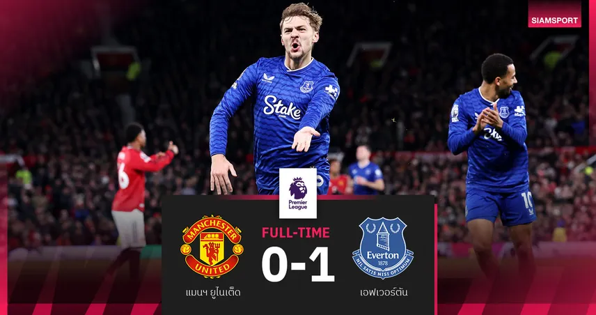 ผลบอล แมนยู 0-1 เอฟเวอร์ตัน : ผีคาบ้านเฉย! ดิวส์เบอรี-ฮอลล์ ซัดให้ทอฟฟี่10คนบุกคว้าชัย